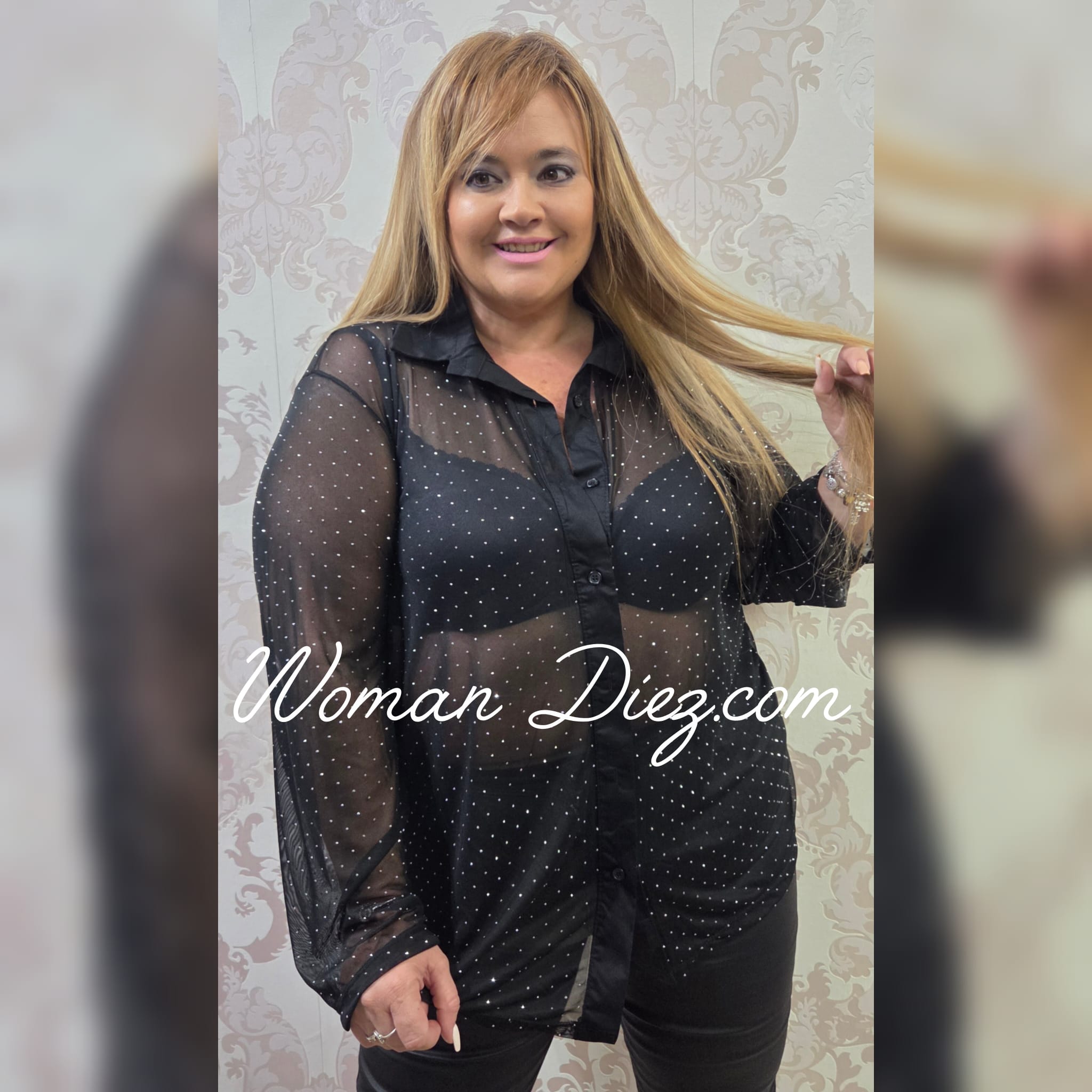 CAMISA DE VELO CON DETALLES DE BRILLITOS TALLA UNICA GRANDE