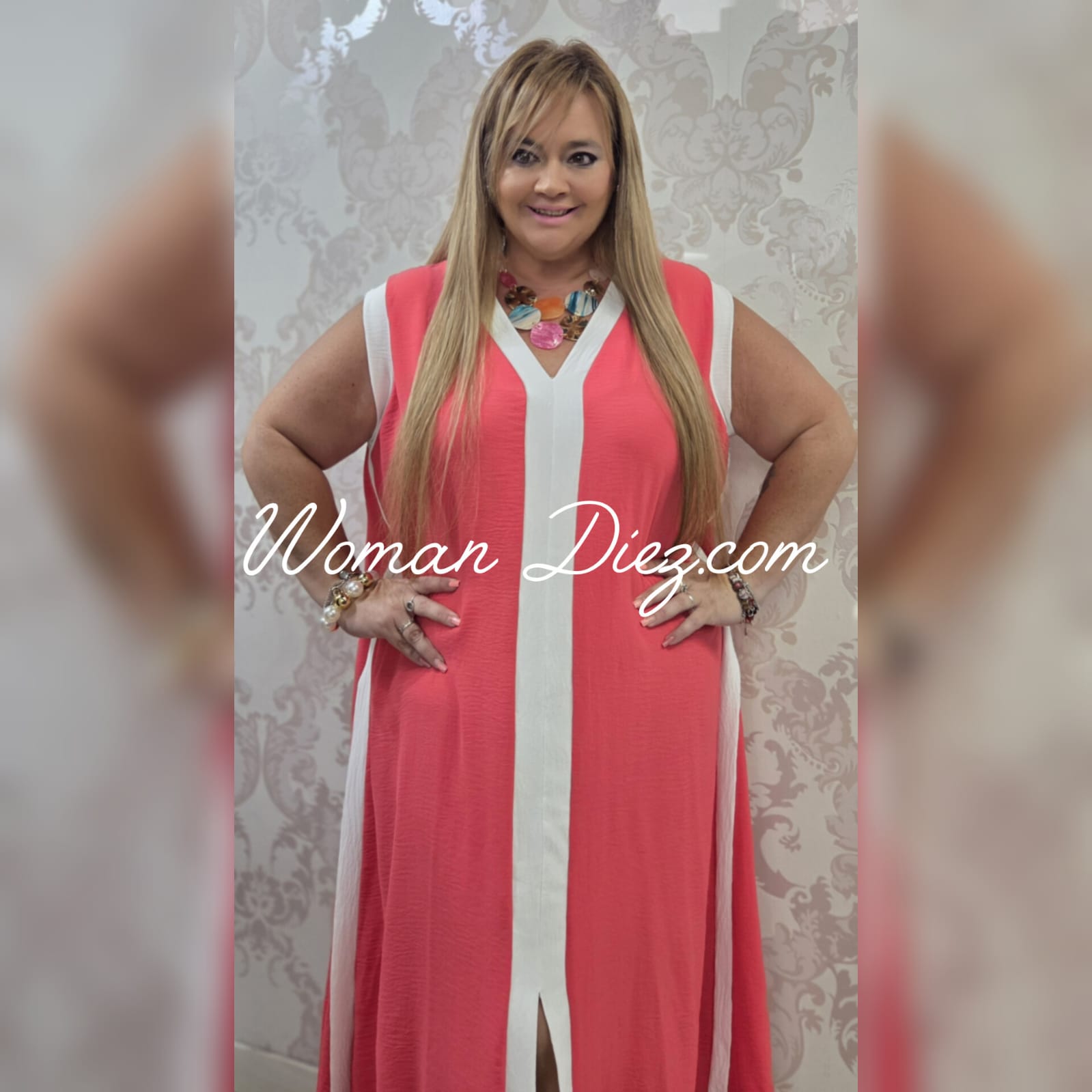 Vestido bicolor coral