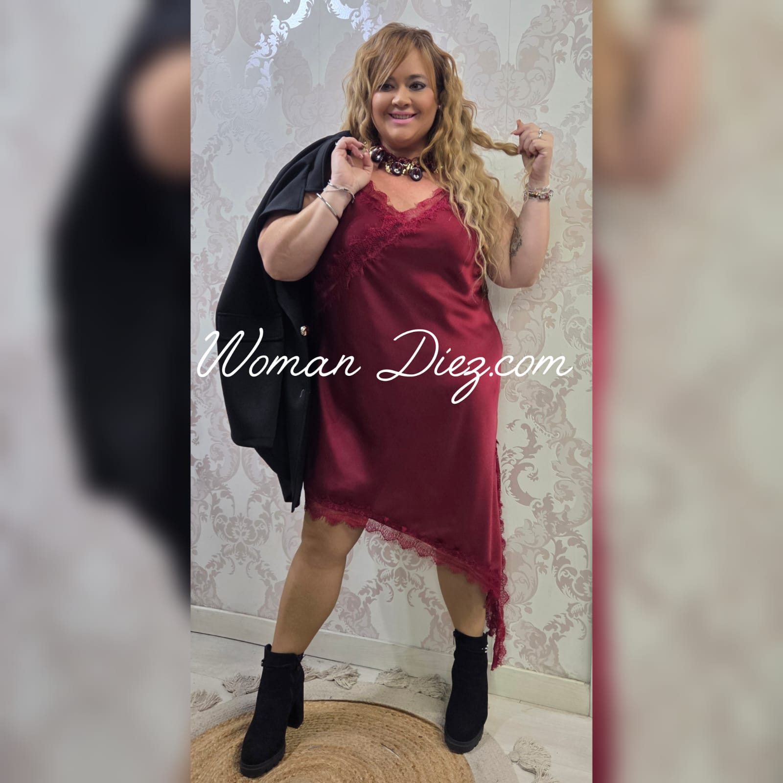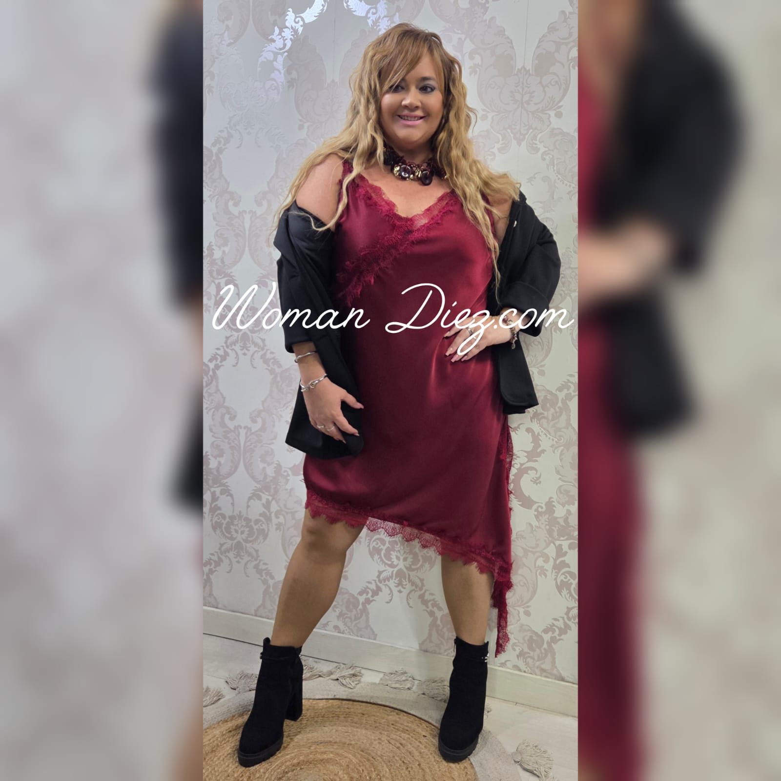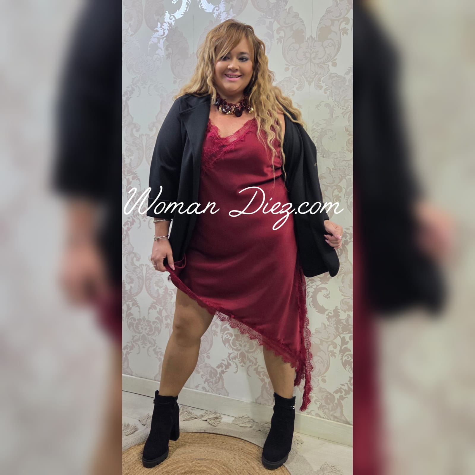 Vestido lencero Zara burdeos